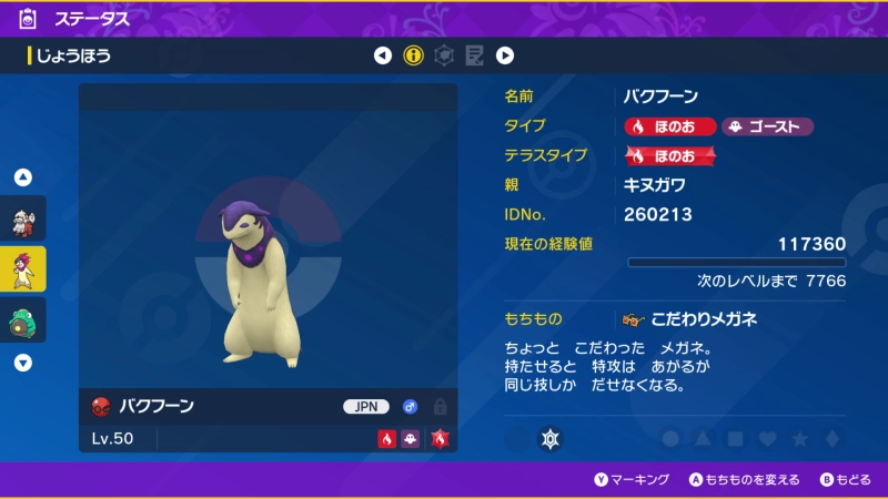 「バクフーン(ヒスイの姿)」は、育成済みの5V個体なので、対戦環境にすぐに連れていくことができます。