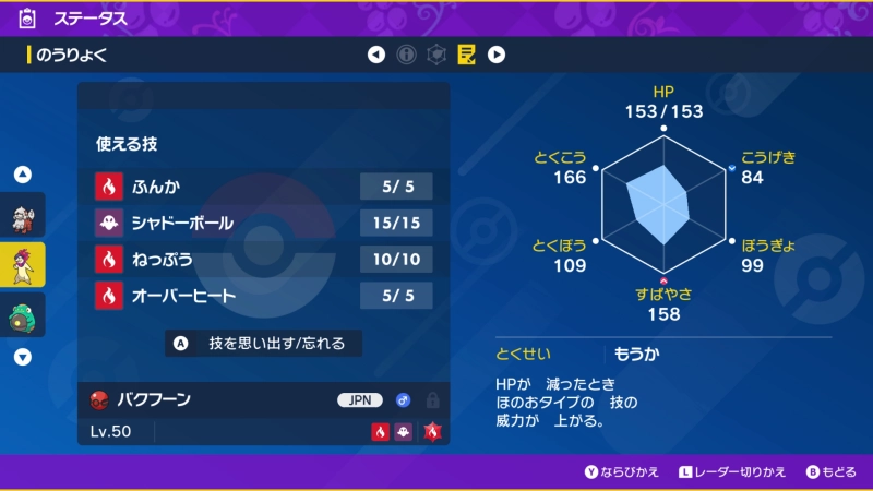 | 技 | ふんか シャドーボール ねっぷう オーバーヒート |