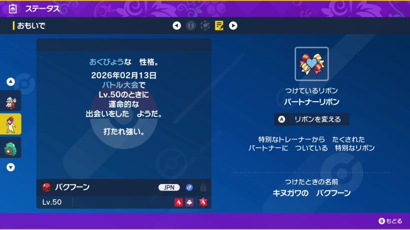 - 受け取ったポケモンは、手持ち(またはボックス)で確認できる