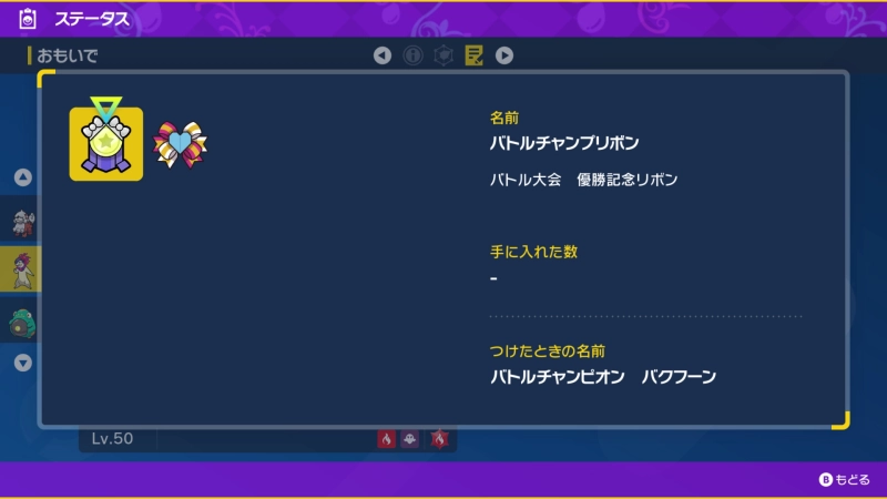 また特別なリボン「パートナーリボン」と「バトルチャンプリボン」が付いています。