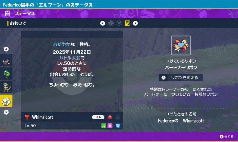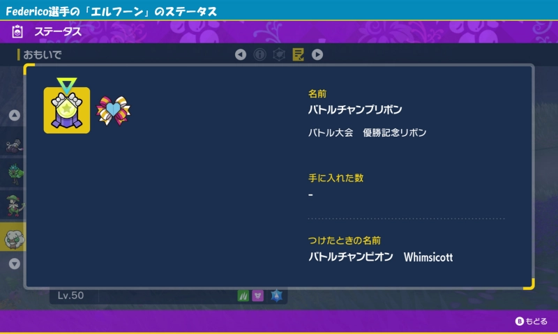 また特別なリボン「パートナーリボン」と「バトルチャンプリボン」が付いています。