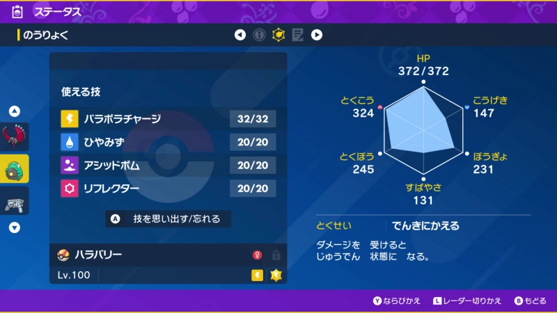 ※メトロノームの場合は「パラボラチャージ」連打。必要に応じて「ひやみず」を使う。