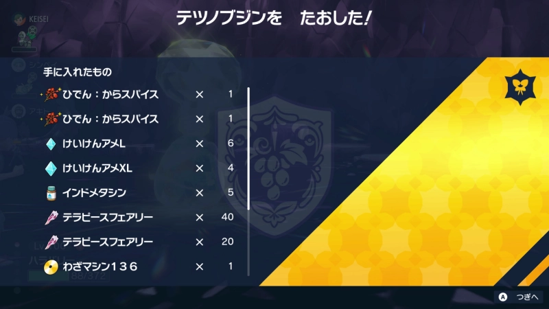 3. 「テラスタル」後に「てっぺき」を3回使う